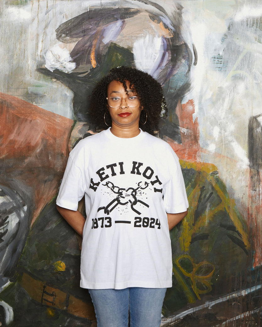 In commemorating of the 151st anniversary of the emancipation of enslaved people in Suriname in 1873, Patta is proud to launch the Keti Koti Graphic T-Shirt. "Keti Koti," which means "the breaking of chains" in Sranan Tongo, holds profound significance for humanity. This day serves as a time to reflect on our history, honour the resilience of those who endured the horrors of slavery, and pay tribute to their indomitable spirit.