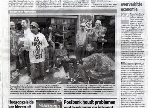 It exploded, and the email inbox started flooding. Four days in advance, sneakerheads drove from Germany, Switzerland, Belgium and France to sleep in front of the store and obtain a pair. ASICS made about 300 pairs, and approximately 400 people were waiting in line. Since it was the first time people were queuing for sneakers in Amsterdam, the police were a bit worried, but the vibe was generally good. The media also caught wind of it and came by to ask the team for interviews. Edson made an exclusive deal with a local news station that gave them entry to the shop during the launch, in exchange for putting the piece on the daily news. This way, it would be broadcast multiple times per day instead of once during coffee hours.